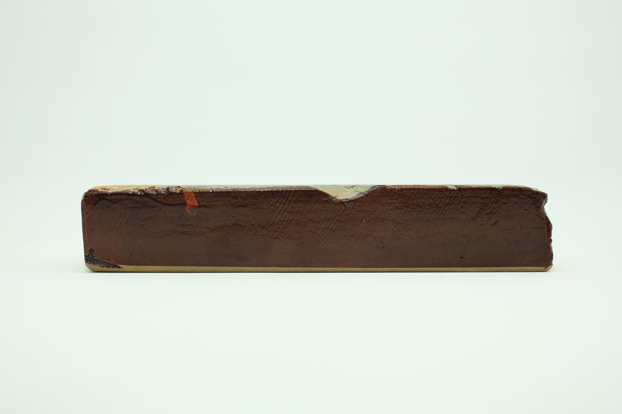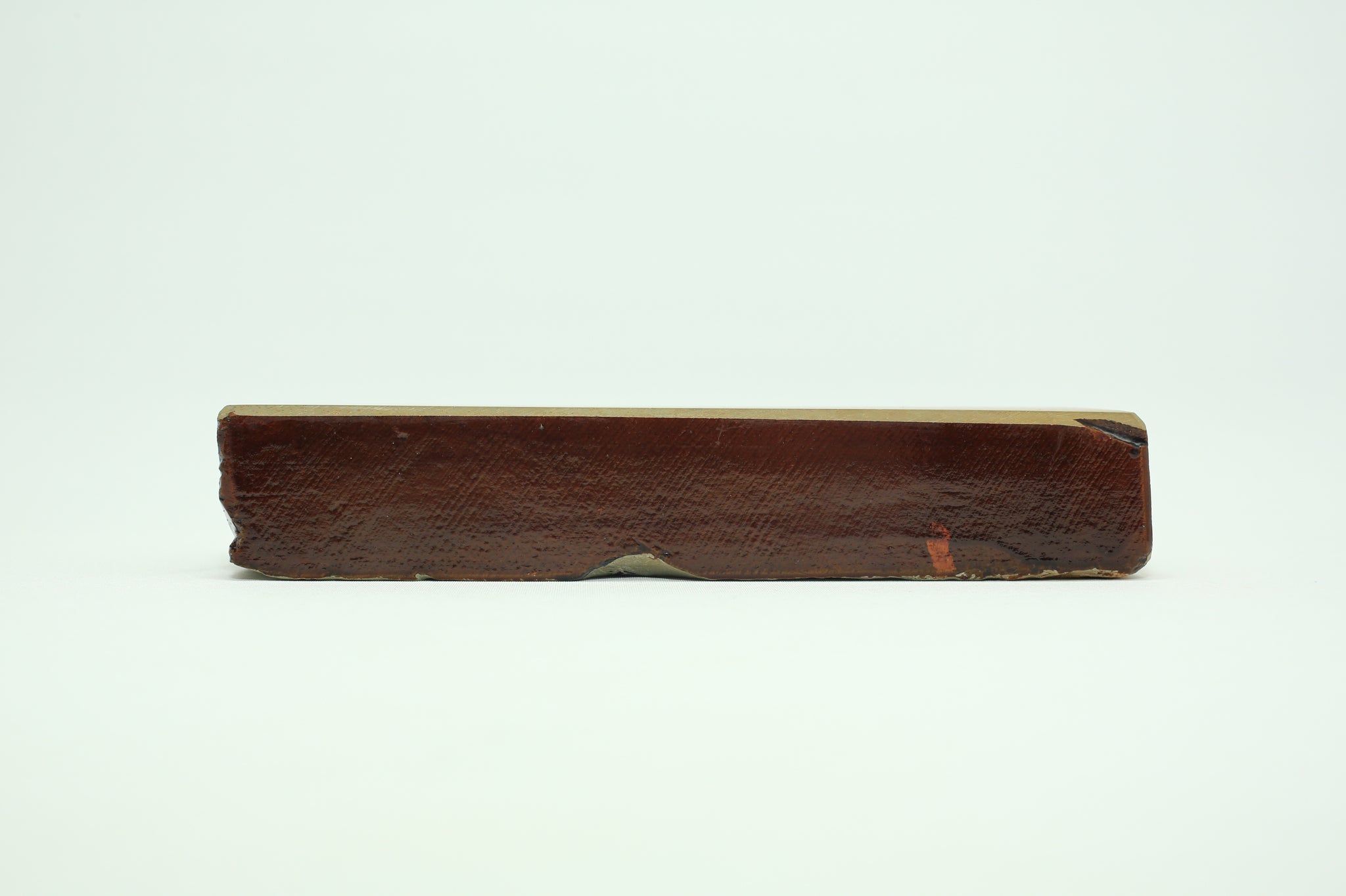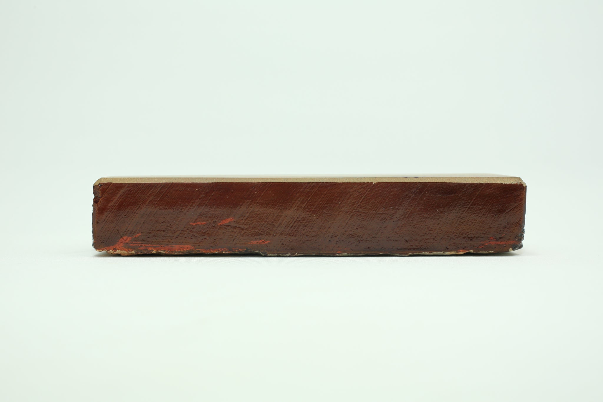 Very rare and beautiful Hakka Renge Suita 30size bench stone. It was a surprised discover within a pile of stones. Very clean stone without any line. All corners were intact. Was sealed with Urushi lacquer all around. The base sit flat without wobble. The hardness is about 2.7/5. Very easy to make beautiful kasumi finishes. All stamped are still intact. Came with a soft box.