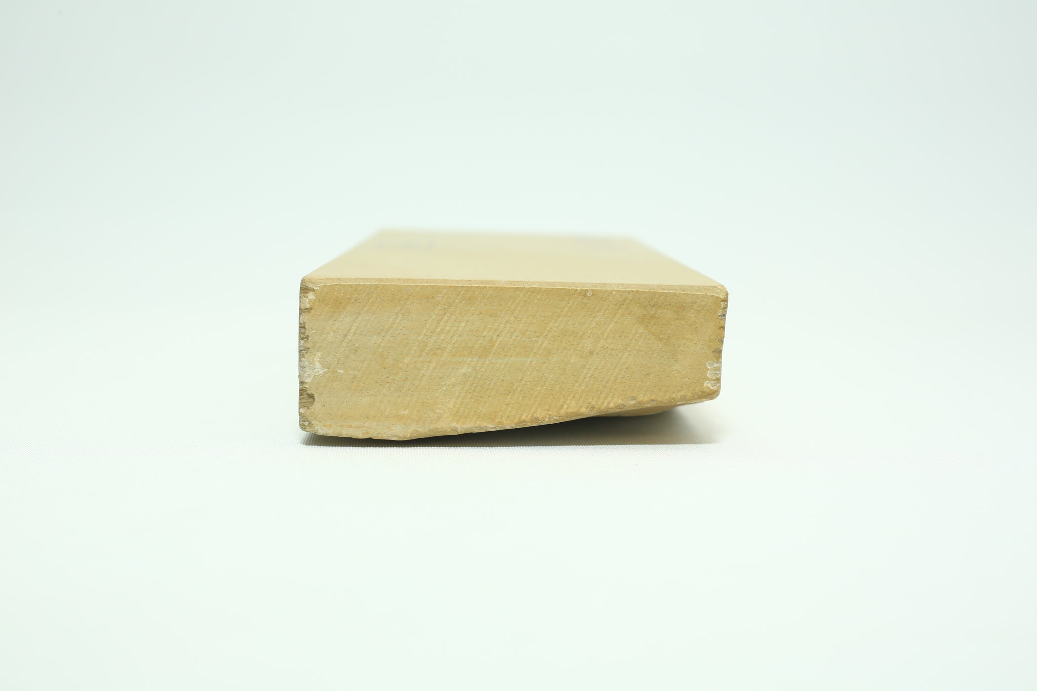 Beautiful yellow Atagoyama that is very clean and without any line. Good shape with all corners intact. One section sloped a little at the base. This is a soft stone but quite fast and very easy to use. Buttery feel like smoothness. Excellent finishing stone and sharpen the edge well. Came with a soft box.