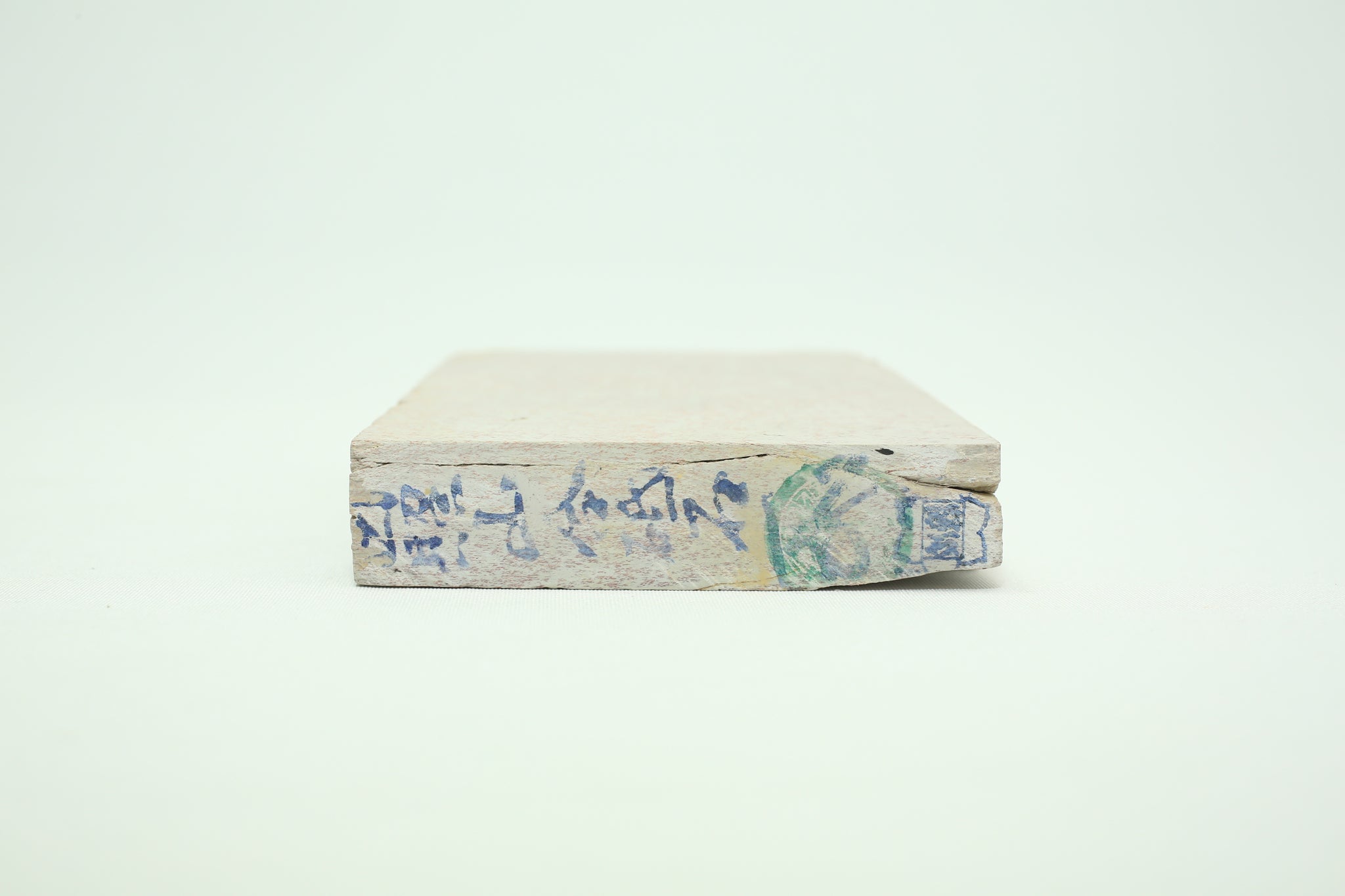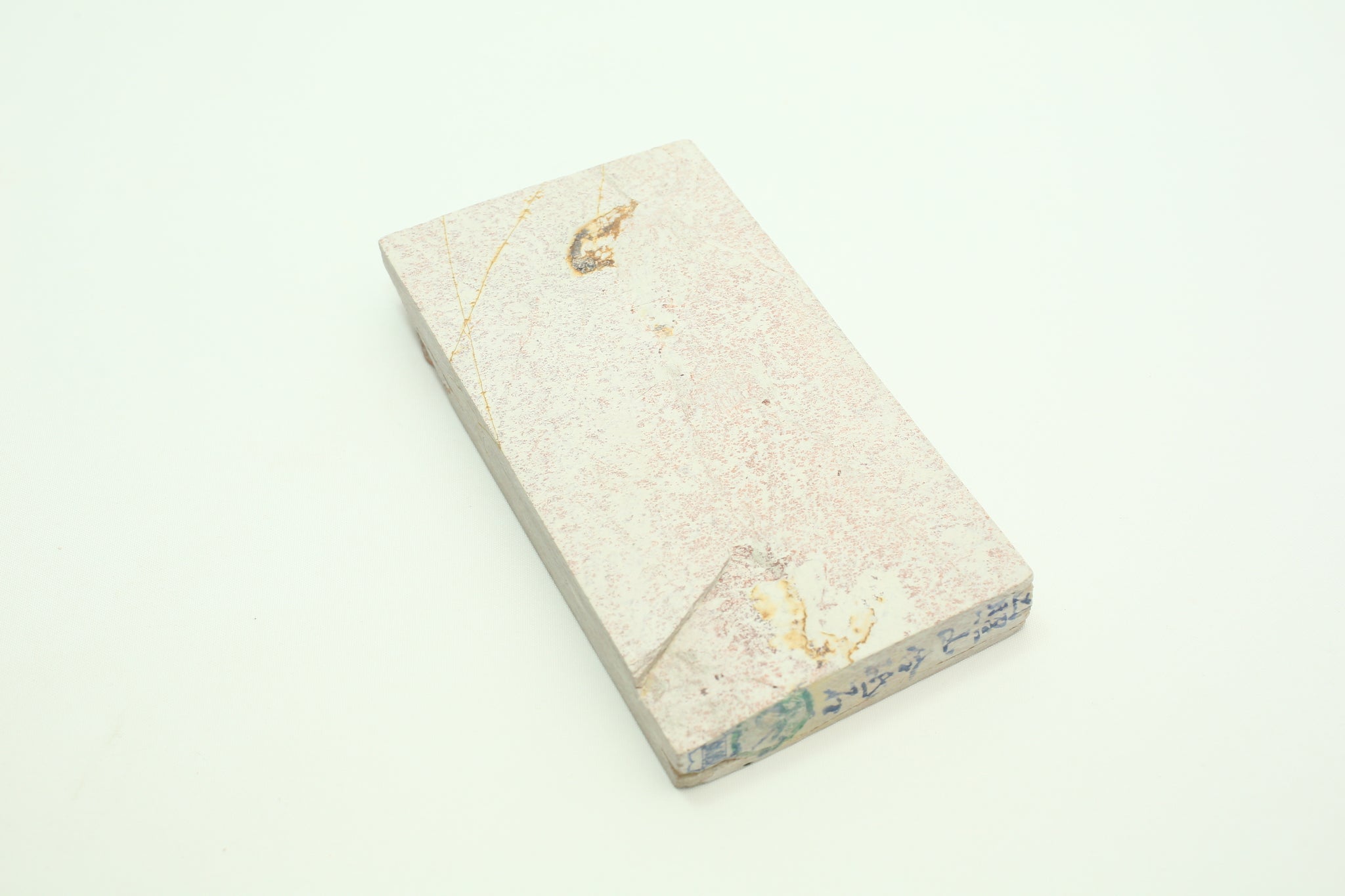 Very rare Hideriyama Renge Suita with full bloom high density Renge. Some imperfection at each side corner but it doesn't affect the use. It is a medium soft stone and it cut steel rather fast. Good finishing stone for small blade or tools due its size. The length is a bit short at just 15cm and it has layer crack. Due to the rarity of this stone it is highly recommend to seal it. Stamped is still intact on one size and both end. Double sided flatness.